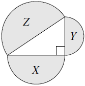 Three semicircles have diameters which are the sides of a right-angled triangle.