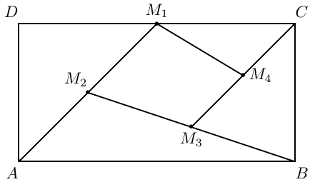 Find the ratio between the areas of the quadrilateral \(M_1M_2M_3M_4\) and of the rectangle \(ABCD\).